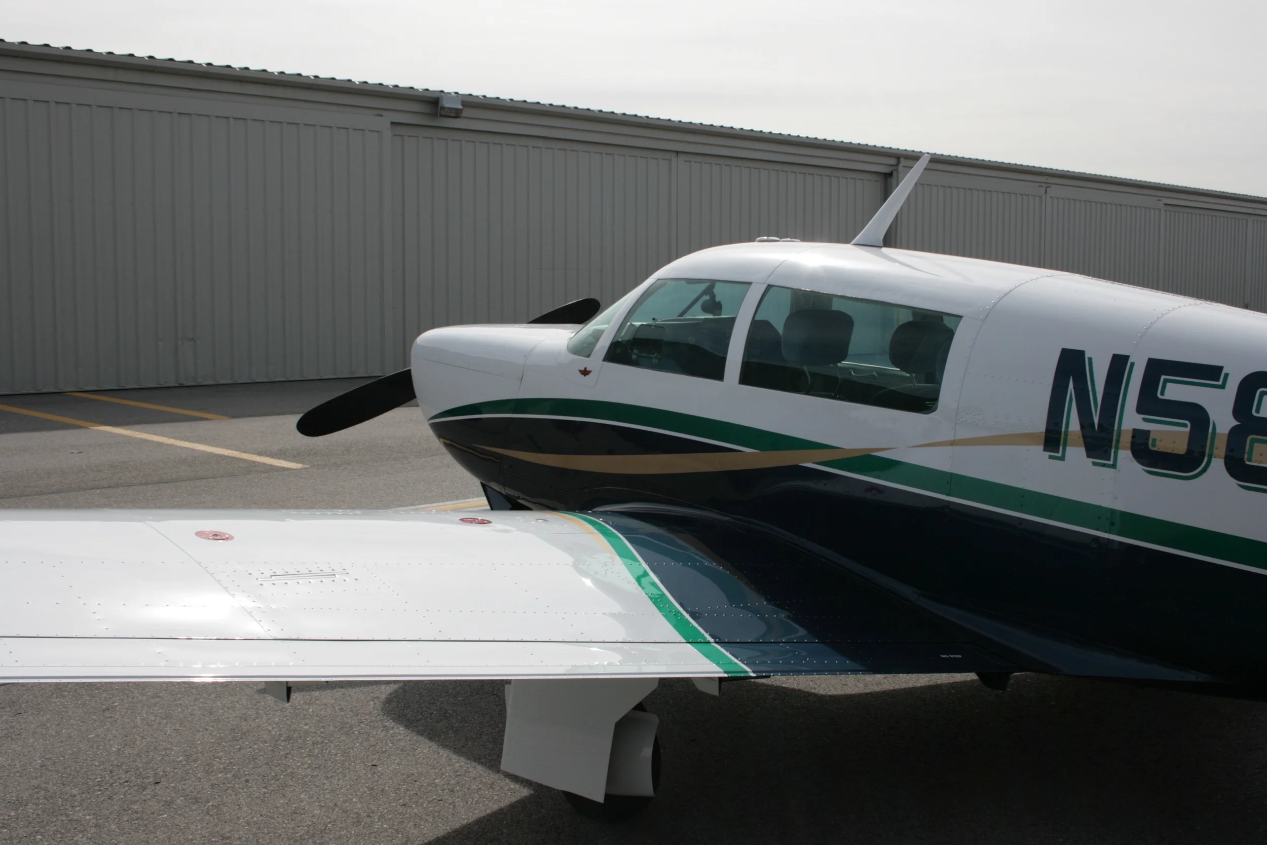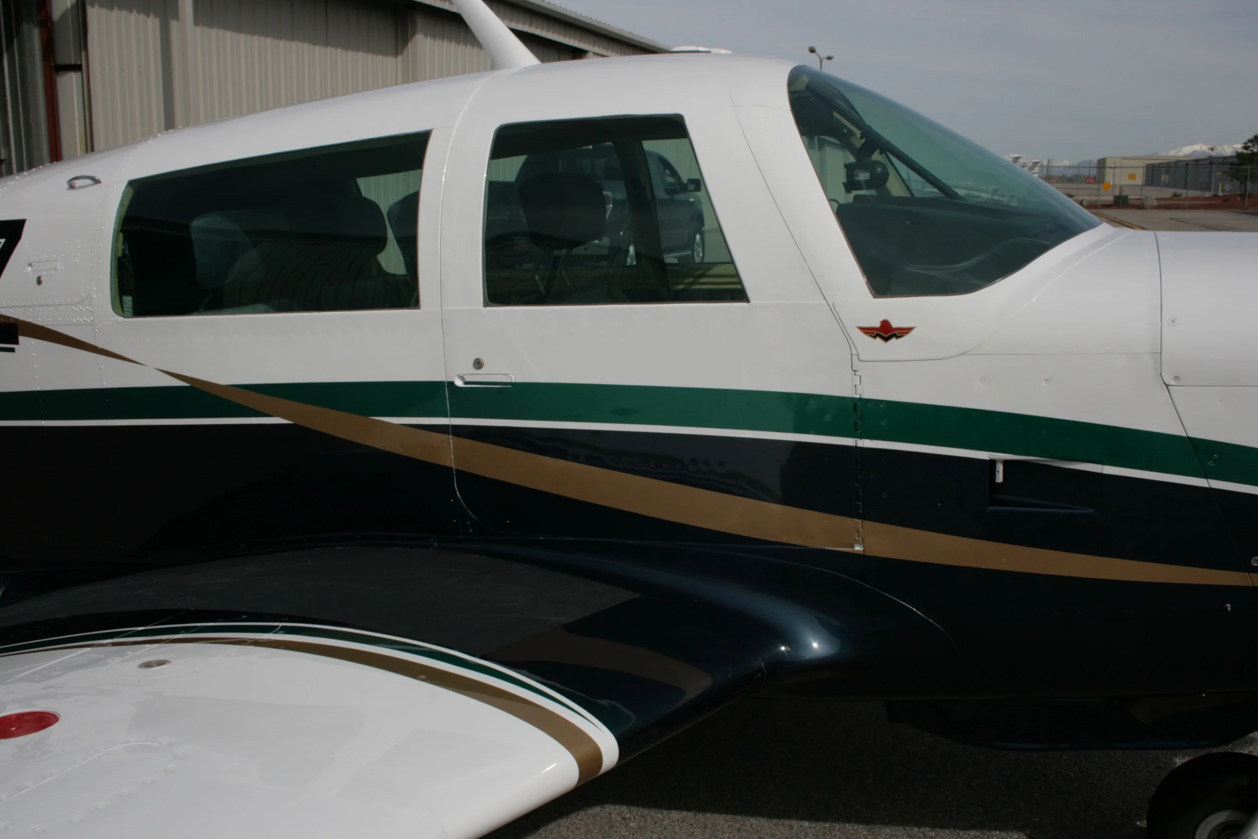 N5810Z is a great flying airplane with a low time engine. The paint was showing all of its 25 years, so she got a complete strip and paint at Straube's Aircraft Services in Ogden, UT. The design was created by Brian Smith of Wings Aviation. Brian and I spent about six weeks trying different looks until we came with a design and color scheme that I really liked. (He didn't like the placement through the N-numbers in the paint vs the placement of the stripe in the design, but I am really happy with the outcome).
